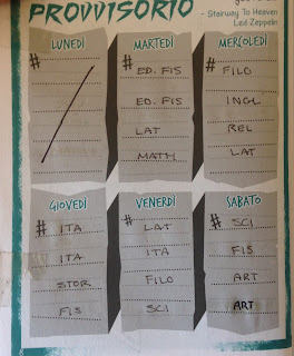 I woke up at around six in the morning in darkness, having to be weary of a sleeping Pietro who is still asleep. I took a shower and had to use my phone to see in the room and grab my stuff, but I made it out of the house in time. At seven o'clock I left the house and walked to the station of Pisa, and caught the 07:19 train towards Pontedera. Trains are much more relaxing than my usual commute in the states on the bus and ferry. The week before, Paolo showed me the way to my school from the station, so when I got off the train, I hurried to school. Once I got there, it was swarmed by first years and confused students.. none of which spoke very well English. I used my at-the-time broken and shy Italian saying to the secretary, "Dov'è classe 4A?" He replied with a gesture up the stairs and three fingers held up, signaling to the third floor. Good. I can easily find it.. not.